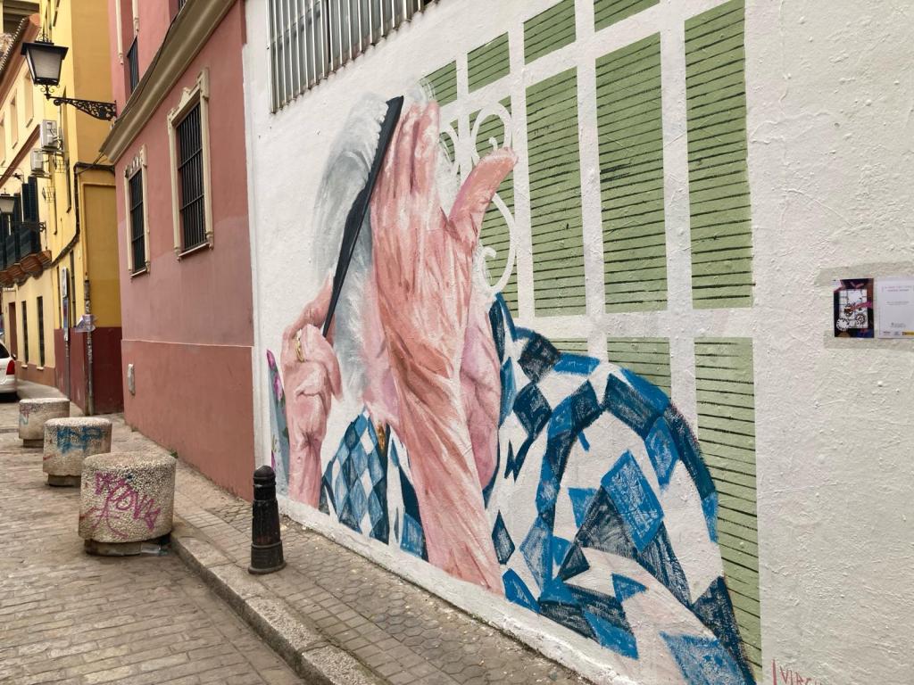 Si pasean por la zona norte del centro de Sevilla, hay un mural de Virginia Bersabé en la calle Sol.