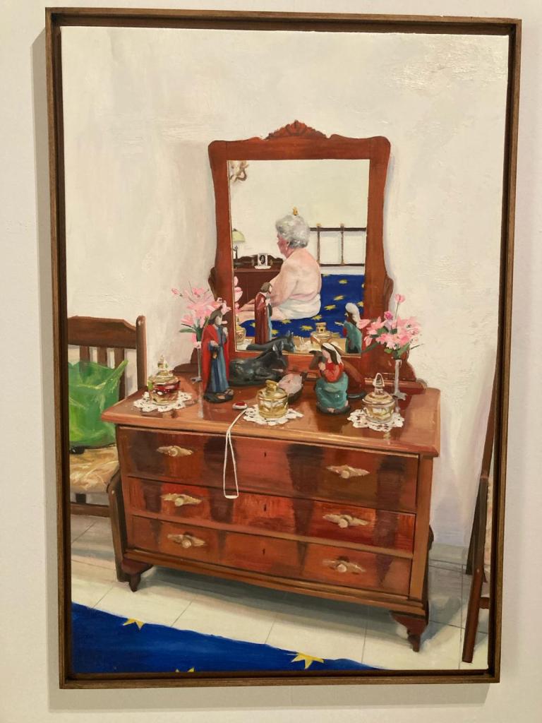 Visitando la exposición, recordé los retratos de familias flamencas de Jan Van Eyck, la minuciosidad de los enseres y lo que pretendían contar sobre la vida de sus adinerados dueños. En las pinturas de Virginia Bersabé, licenciada en Bellas Artes por la Universidad de Sevilla y que formó parte de la XIII Promoción de Jóvenes Creadores de la Fundación Antonio Gala, no hay intención de ostentación ni lujo. Pone marco a una realidad que no nos es ajena.